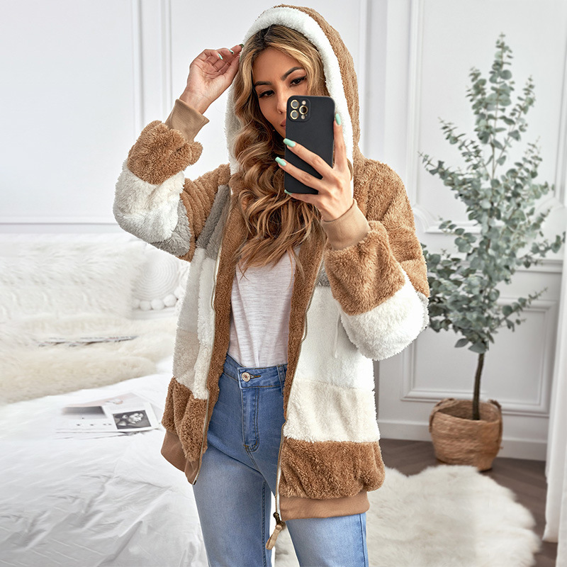 Color Blocking Hooded Zipper Long Sleeve Sweatshirt