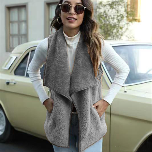 Sleeveless Simple Positive Negative Wear Large Lapel Vest Jacket