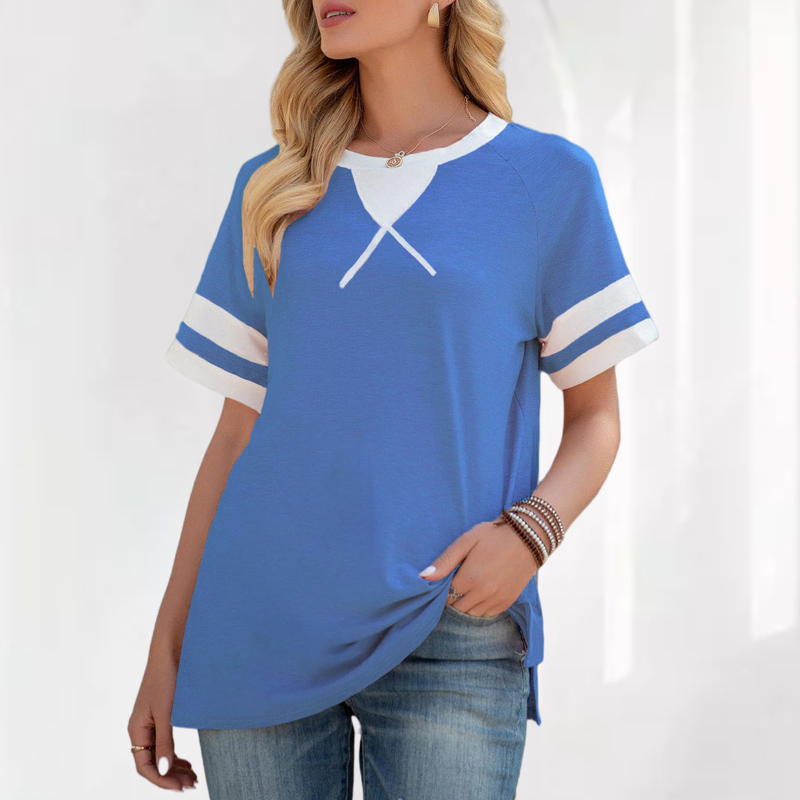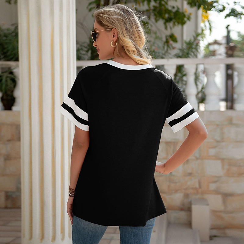 Casual Striped Stitching Loose Short-Sleeved T-shirt