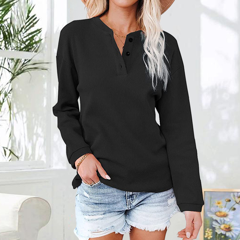 Solid Color Long-Sleeved Casual Half Open Collar Top