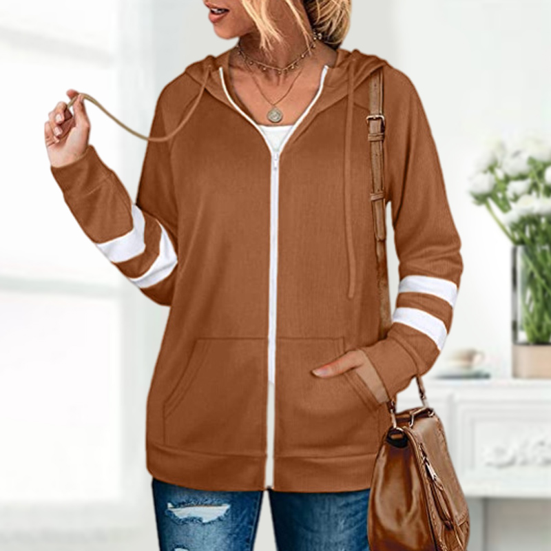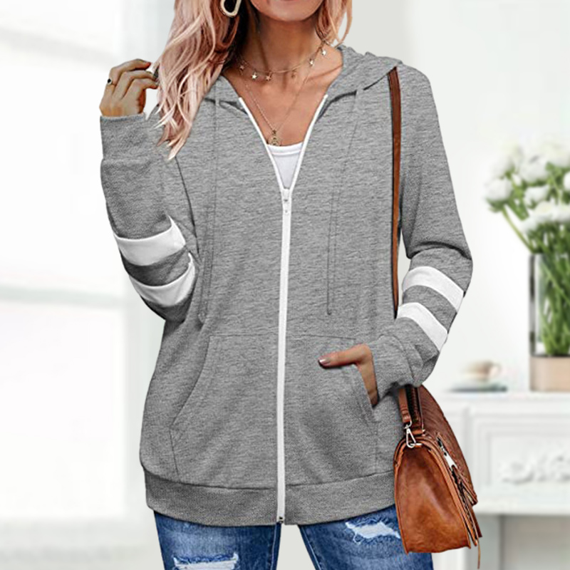 Striped Drawstring Hooded Long Sleeve Zipper Sweatshirt