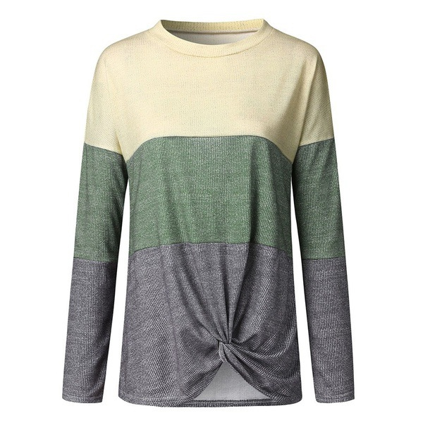 Color Blocking Knotted Front Long-Sleeved T-shirt