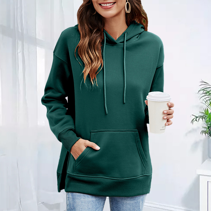 Solid Color Loose Long Sleeve Hooded Sweatshirt