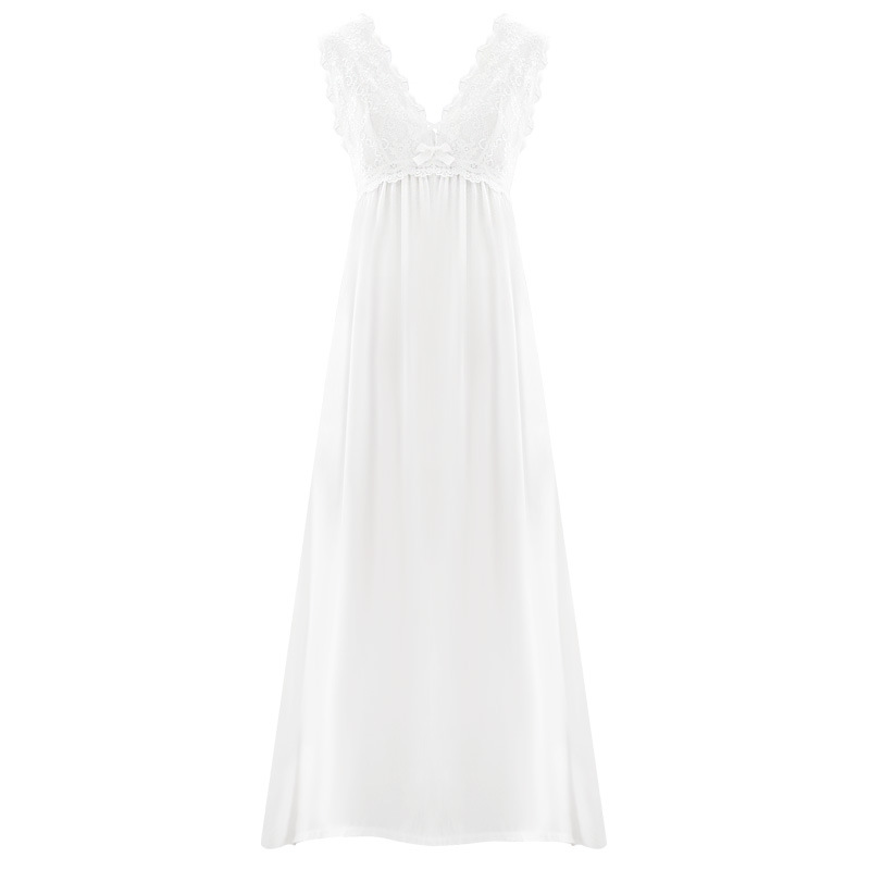 The stunning draped dress with a plunging v neckline detail and body-skimming silhouette give shape. Featuring lace trims on the neckline and waistline to highlight your charming curve, it's a must-have timeless lace nightgown in your wardrobe!