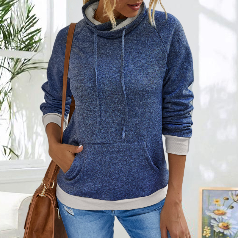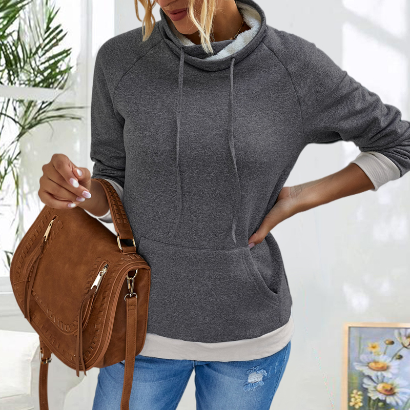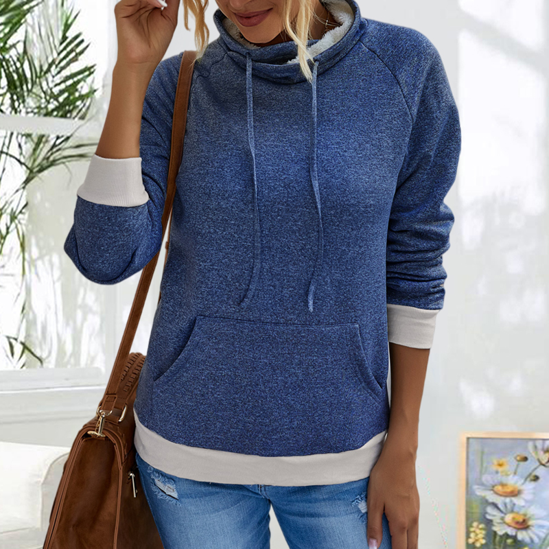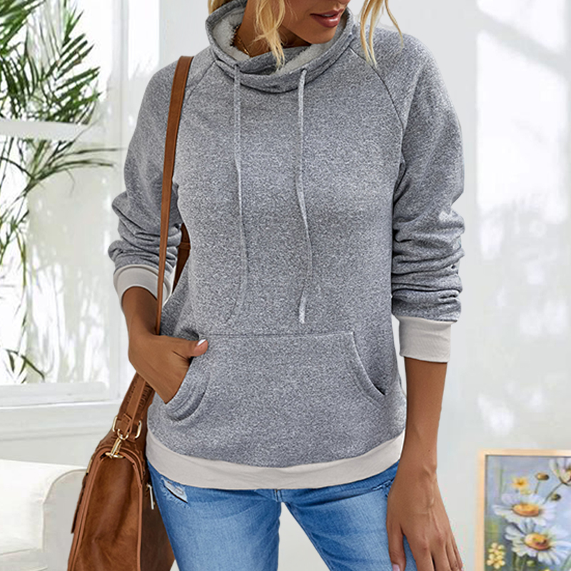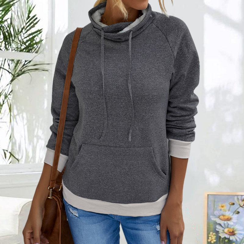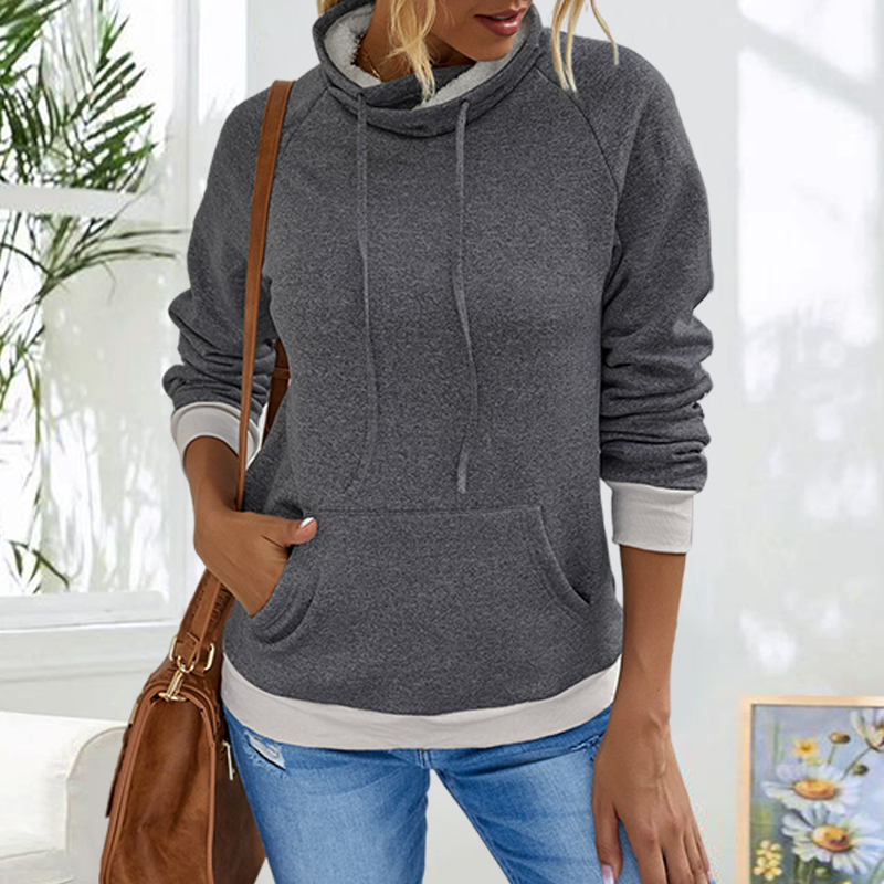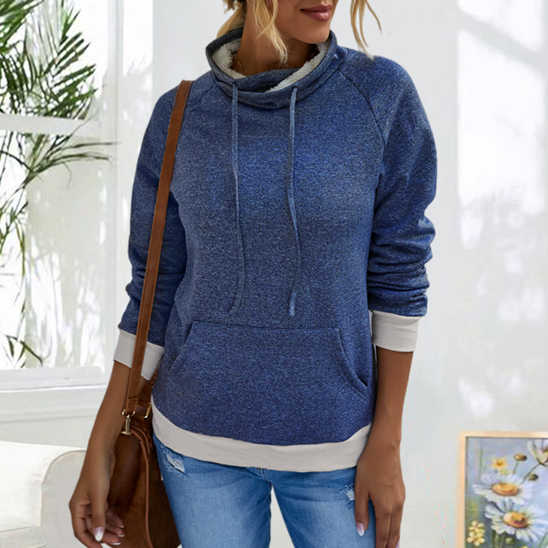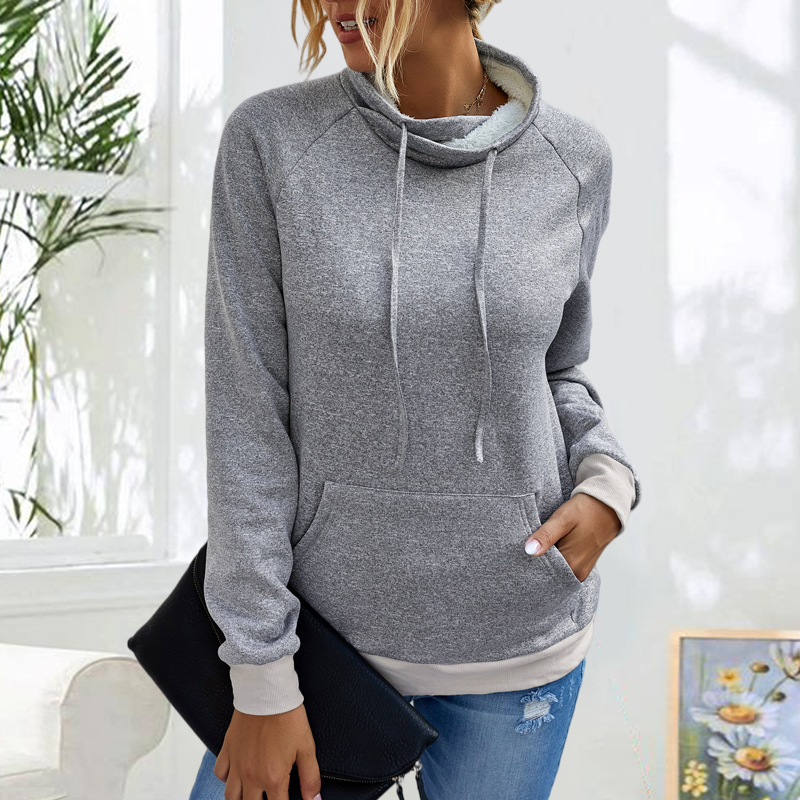 Casual High Neck Drawstring Long Sleeve Warm Sweatshirt