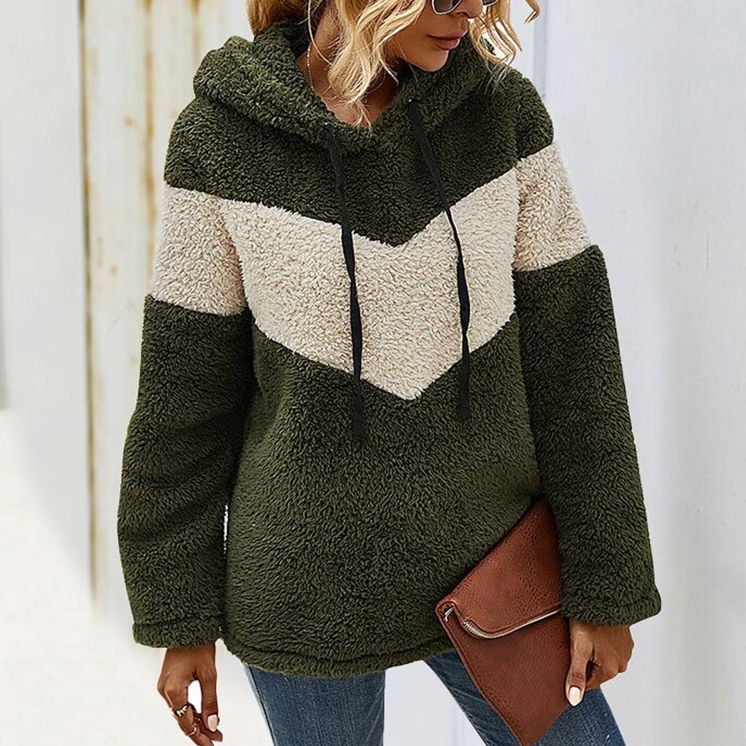 Hooded Color Blocking Thickened Warm Sweatshirt