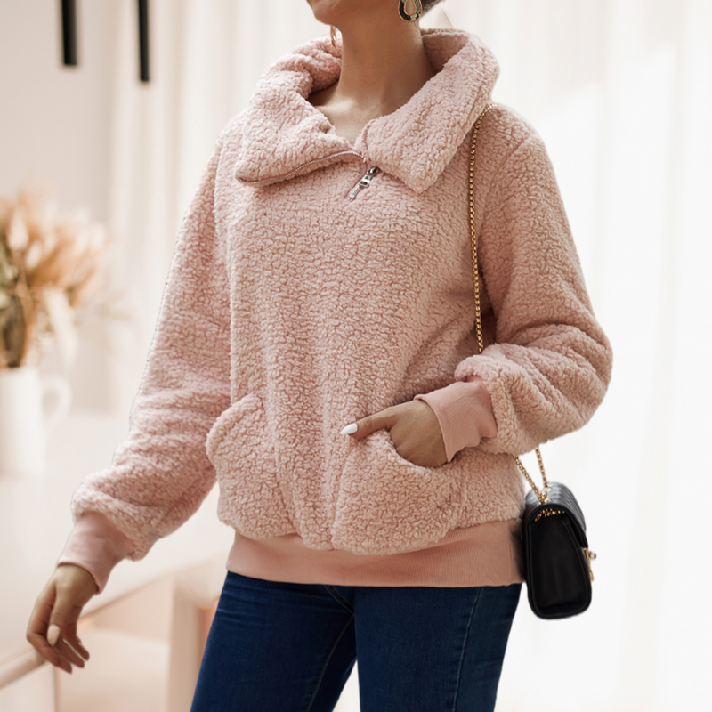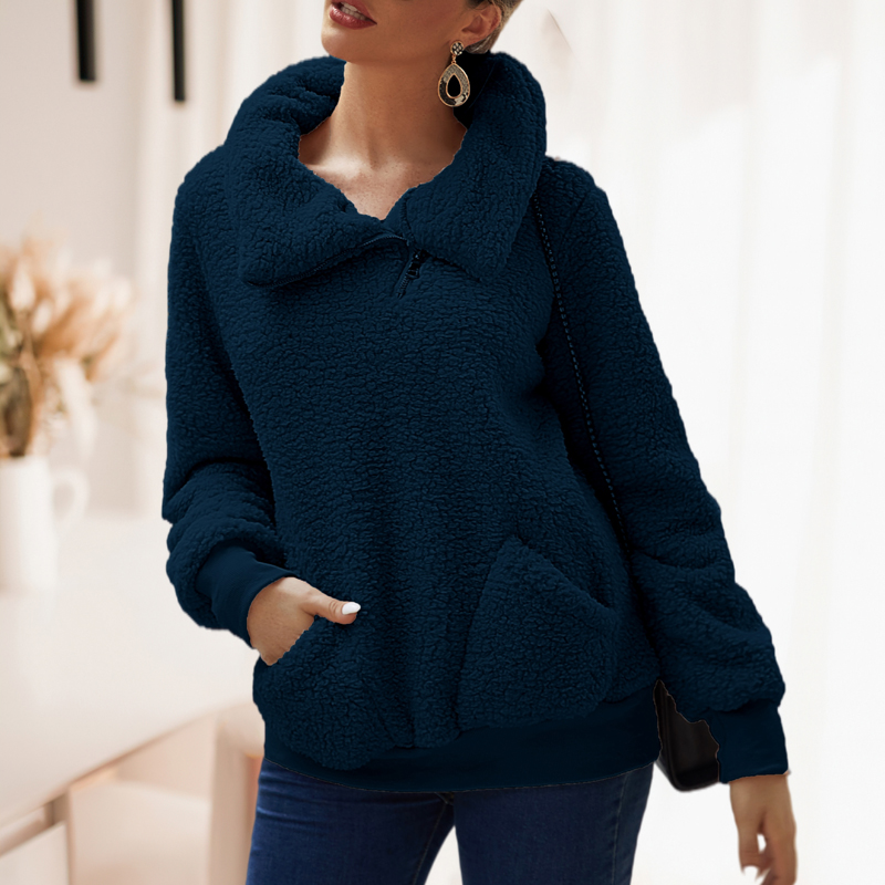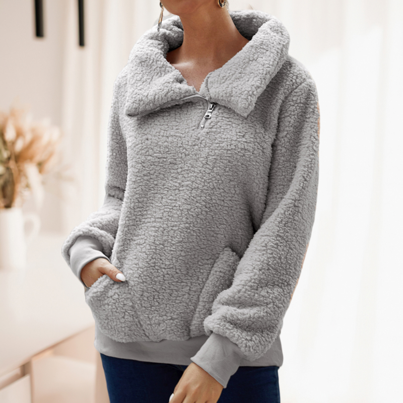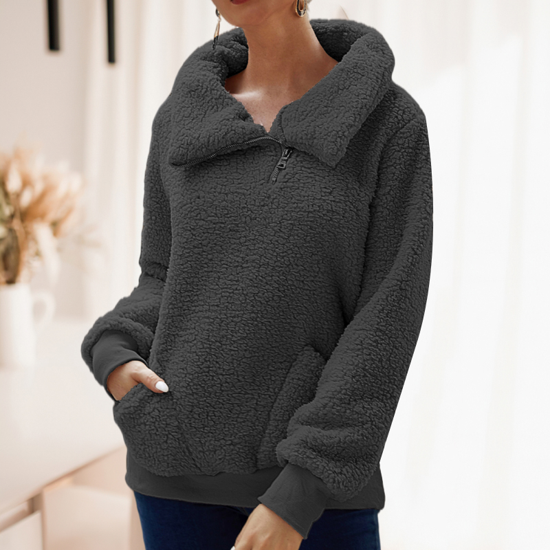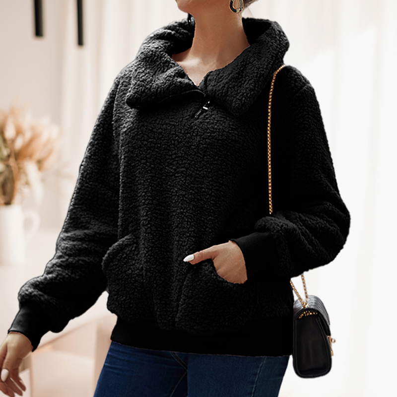 Solid Color Lapel Collar Zipper Fleece Sweatshirt